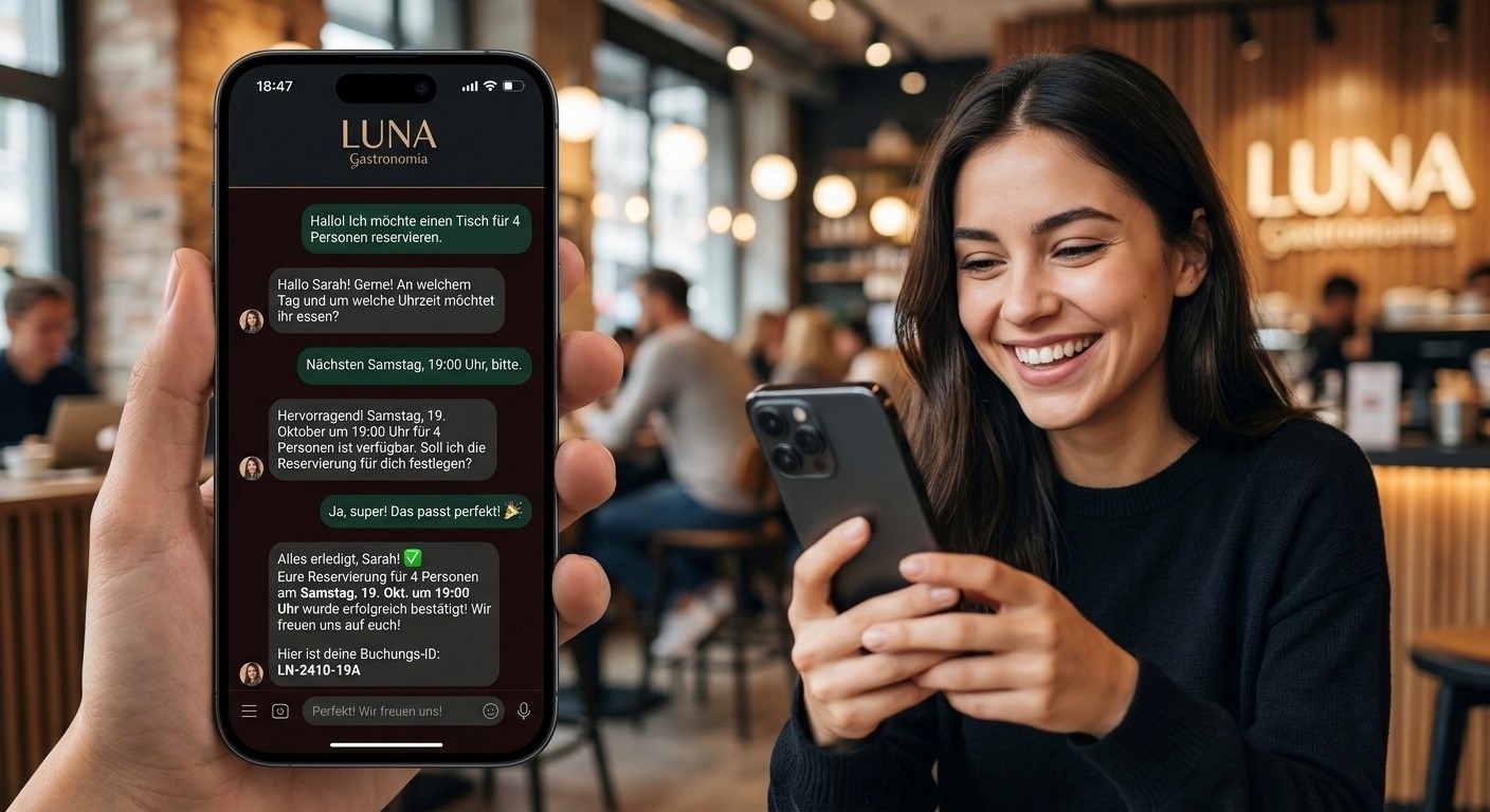 Ein AI Voice Agent nimmt jeden Anruf sofort entgegen, reserviert automatisch und sorgt dafür, dass kein Umsatz mehr liegen bleibt.