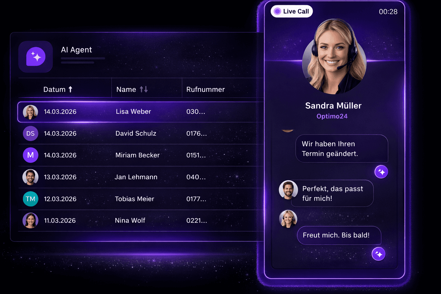 Dein Agent arbeitet, wenn du es nicht kannst – beantwortet Anrufe, bucht Termine, löst Aufgaben.